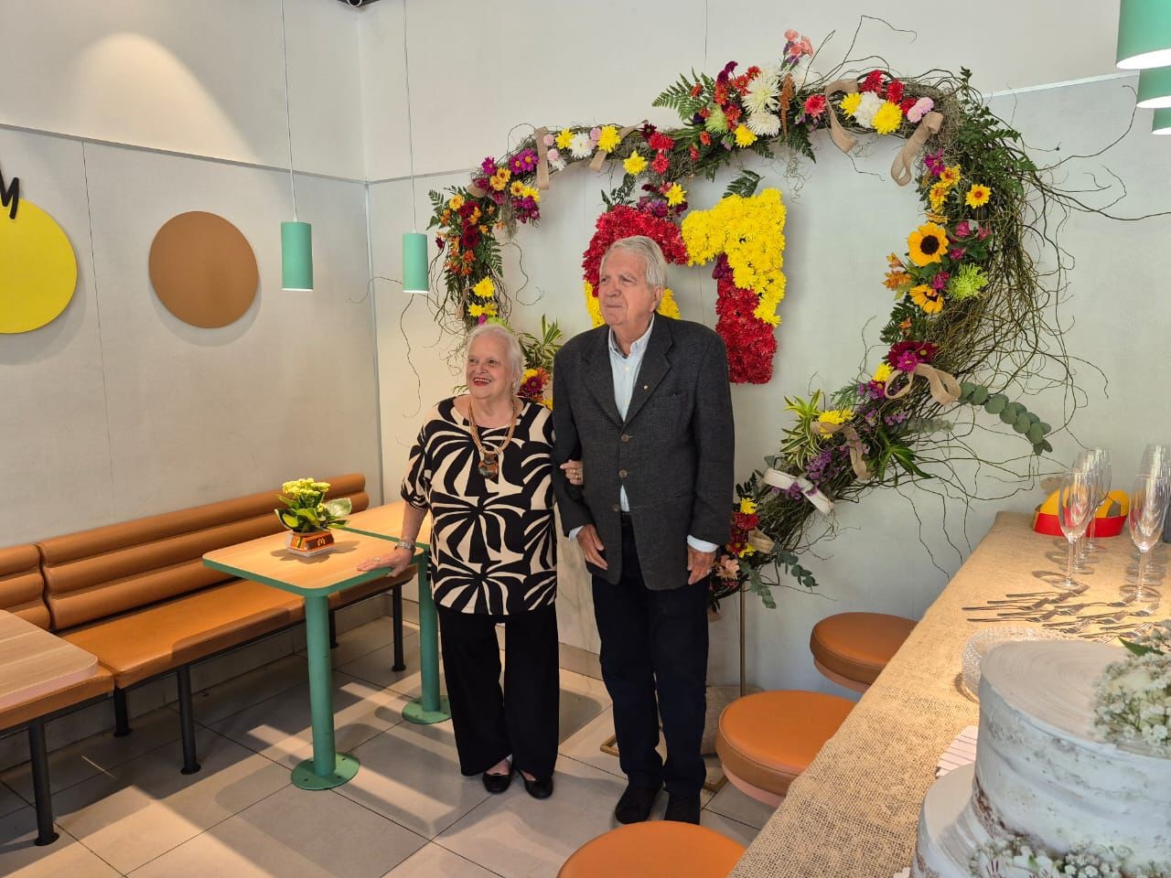 Com direito à decoração temática e sessão de fotos, o casal pode celebrar o momento com mais 10 integrantes da família. A carioca detalha que a rede reservou uma parte da loja para a realização da festa. “Fizeram um coração na parede para os 61 anos de casamento. Foi tudo muito organizado e bonito”, afirma.