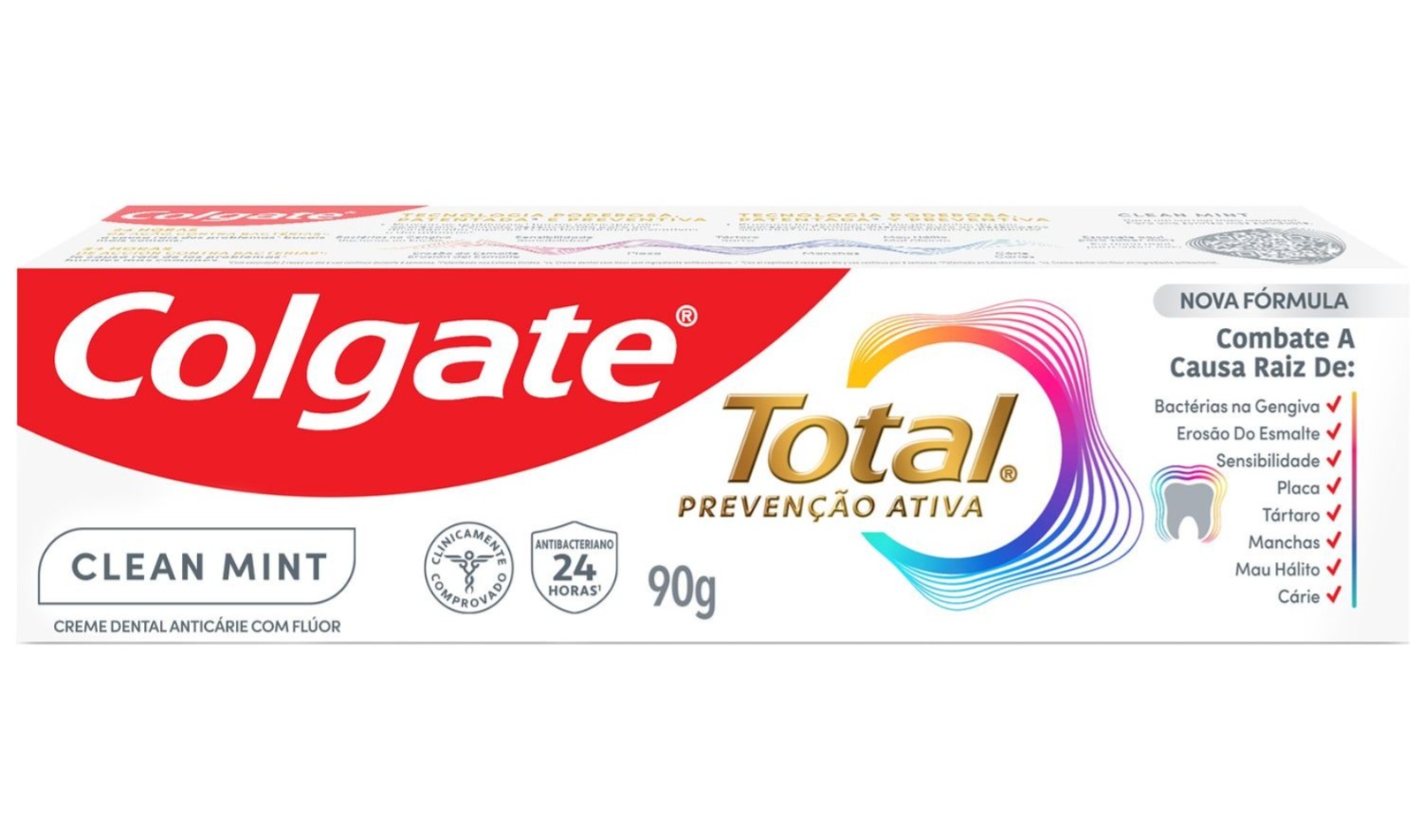 O produto é o creme dental Colgate Total Prevenção Ativa Clean Mint A Colgate-Palmolive Brasil informou que está descontinuando o creme dental Colgate Total Prevenção Ativa Clean Mint, que chegou a ser interditada cautelarmente pela Agência Nacional de Vigilância Sanitária (Anvisa) após relatos de efeitos adversos como inchaço nos lábios.