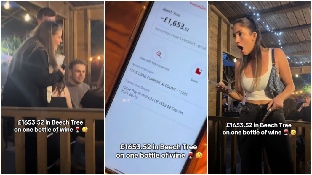Cliente se assustou quando viu a cobrança em seu cartão. No TikTok, a publicação já acumula 898 mil visualizações Uma cliente resolveu comprar uma garrafa de vinho de £ 16 (equivalente a R$ 118,36, na cotação atual) para beber com a família no The Beech Tree, restaurante localizado na cidade de Hull, na Inglaterra, mas não esperava que fosse surpreendida com a cobrança de um valor dez vezes maior do que o informado pelo estabelecimento. Em um vídeo publicado no último sábado (14/6), o primo da consumidora relata que £ 1.653,52 (R$ 12.231,91) foram debitados da conta dela após a compra da bebida. O registro já soma 898 mil visualizações no TikTok.